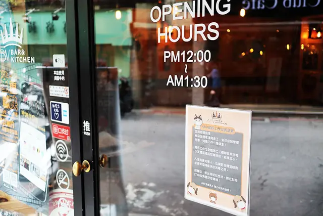 醒目的ABV的招牌,搭配大片的落地窗,黃暈微醺的燈光,自餐酒館中溫暖的照射出,多出幾分浪漫及放鬆的氛圍