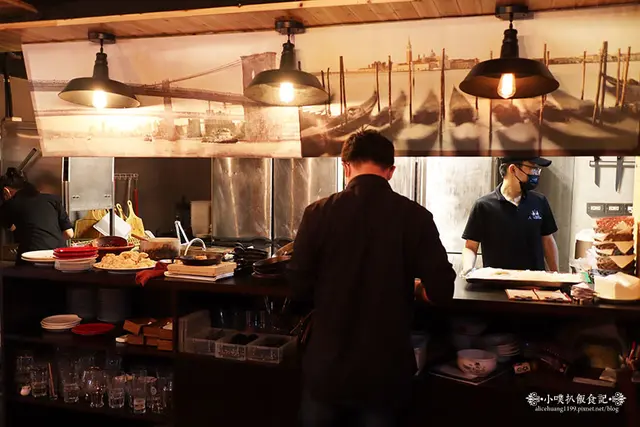 店內底部為半開放式廚房,主廚們烹調及出餐的區域,可清楚看到主廚們精湛的烹調技術,同時衛生環境掌控得很好,豪無油煙味