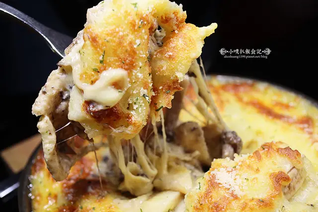 豪邁的挖取一匙,誘人的起司牽絲,實在是吸人眼球!!!口感綜合了香蕉的甜香、松露的清新、起司的鹹香,甜甜鹹鹹的口感,渾厚濃郁,原來香蕉跟松露,實在很match啊!!!