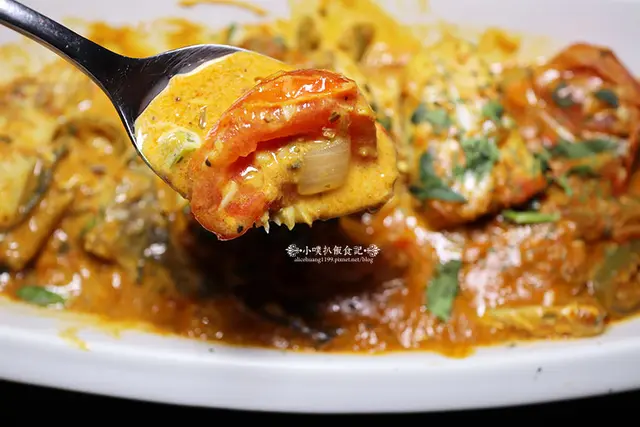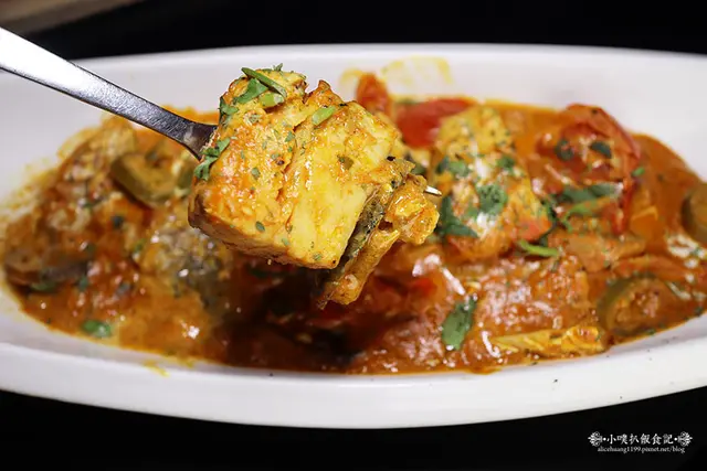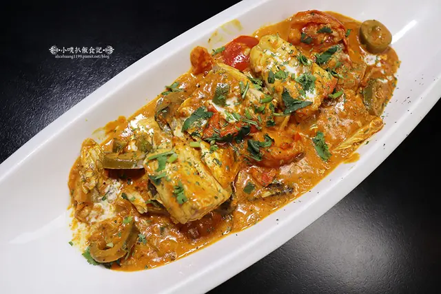 以新鮮鱸魚燉煮為主體,魚肉扒附富有椰香及辣度的醬汁,口感肉質相當細緻軟嫩,充滿鱸魚的鮮度及美味,同時無魚刺,品嚐起來相當方便