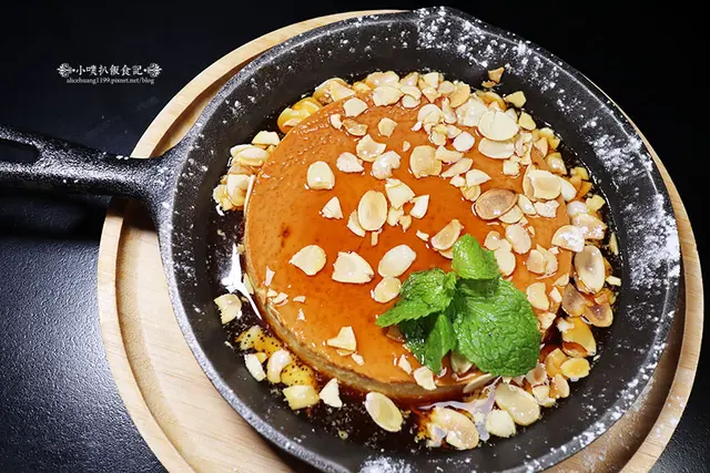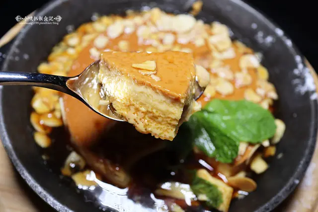 布丁口感細嫩綿密,搭配三分甜的焦糖,不膩口的滋味,在口中縈繞,配上香氣撲鼻的杏仁片,更添美味,是道療癒指數極高的可口甜點
