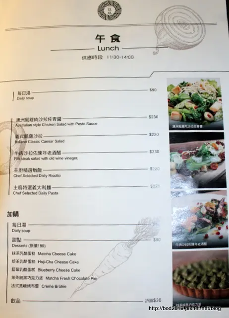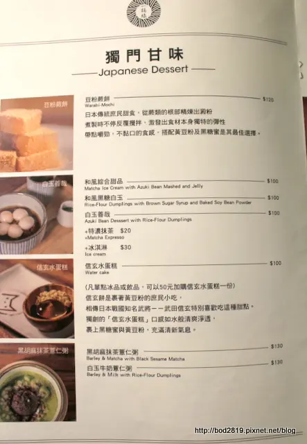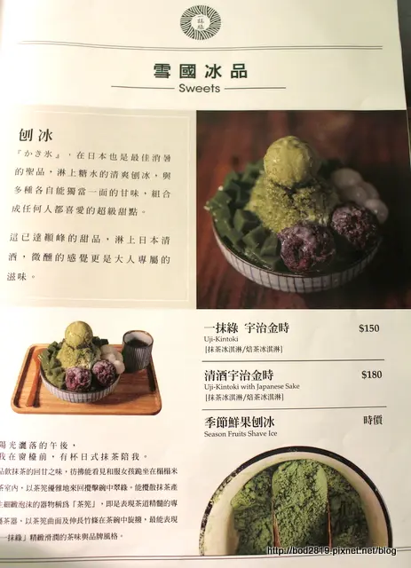 以抹茶為主的店來說還滿少見的,還有素食呢,酒類…‥感覺有點像是來到餐酒館,以價位來說並不算便宜,兩個人也吃了將近一千五,