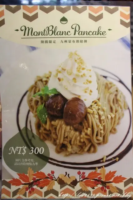 蒙布朗口味鬆餅,期間限定的餐具藍,盤子也滿有質感的,
