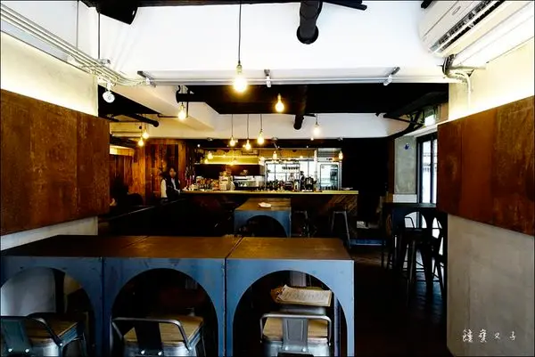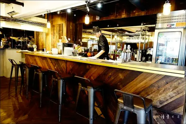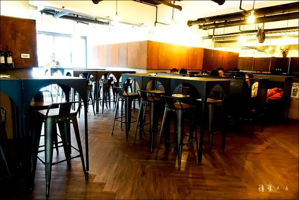 店內以高腳座為主,用了許多金屬及原木質感的裝潢,