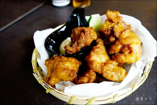 這道《消波塊炸雞》外酥脆內鮮嫩且多汁,不沾醬就很好吃,搭配沾醬別有一番風味。