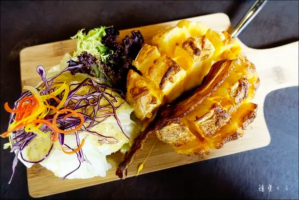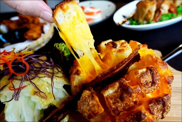 這道菜的特色便是將麵包切成了格子狀,並在裡面塞入起司,