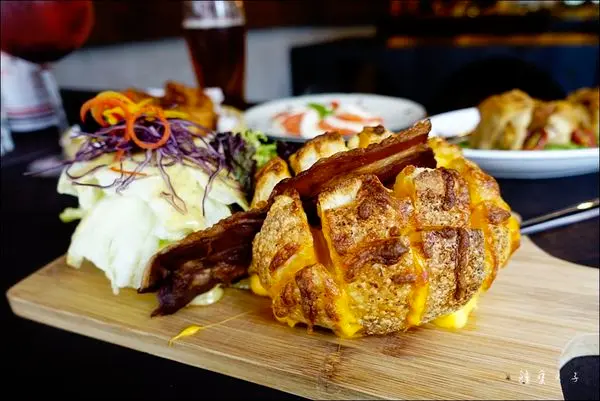 接著在一起烤過,邪惡又美味的起司不斷從麵包縫中向我say hi……