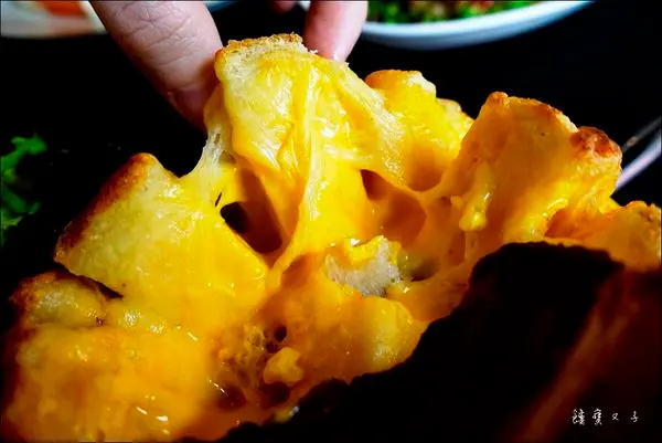 以手拉麵包塊拿起食用,手拉時便會產生極為誘人的牽絲狀~~