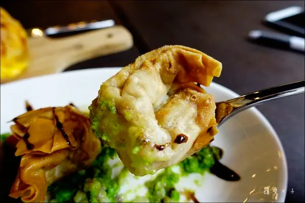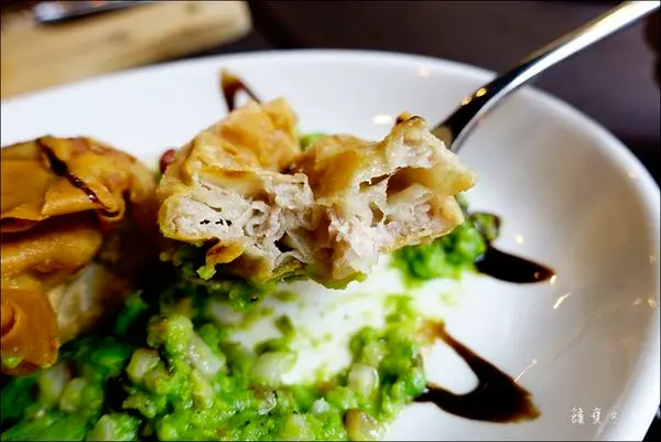 「臘肉、毛豆碎、迷迭香、黑胡椒、百里香、奶油、炸餛飩」