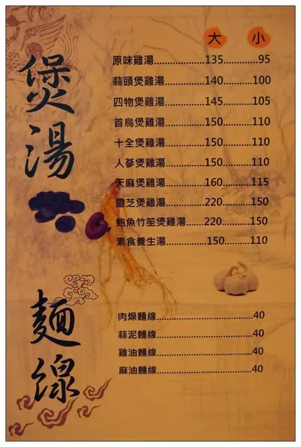 不管是蒜頭雞、香菇雞、四物雞、十全雞湯樣樣精通!!
