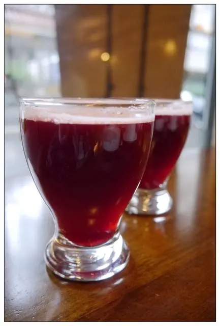 現點現泡的洛神花茶還蠻夠味的~~但怕酸的小菲覺得有點酸!!