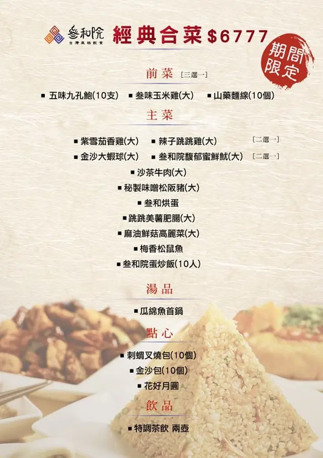 我們這次主要是品嘗♫叁和院台灣風格飲食♬今年推出的新菜色