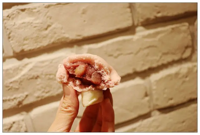 內餡除了和一般的壽桃一樣放了綿密的棗泥之外還加入了松子