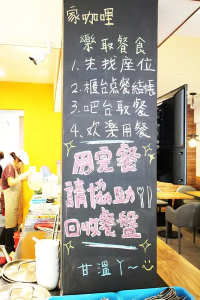 2006年【家咖哩】在美麗的花蓮美崙開設第一間店,以“疼惜大地、誠食生活”為理念,用料上堅持選用與環境共生、有機與無毒的作物,再加上獨家研發10多種特色咖哩,精心設立餐廳宗旨,在2015年在鼓勵與好評聲中走出花蓮、於台南成立了分店,接著來到鄰近松山文創園區的"家咖哩",於3/26正式營業,店內外以亮黃色打造出光鮮明亮的餐廳色系,給人一種放鬆及舒適的用餐環境!!!