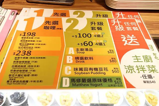 接下來來選餐囉!!!首先1.先選擇咖哩(可單點)