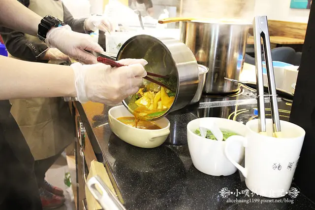 店內櫃台前,採開放式廚房,自助式領餐!!!因為時間逼近中午,服務人員皆在忙碌中呢!!!