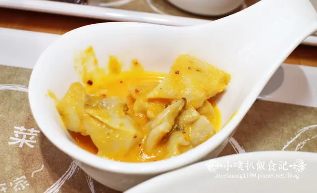 黃金杏鮑菇:感覺酸酸甜甜的,酸V酸V的滋味,很開胃的涼拌小菜,杏鮑菇有脆度,感覺新鮮度很高