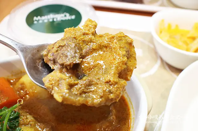 牛腱肉大約4~5塊,有一點帶筋,軟嫩適口,肉質適軟不嚼口,煮燉的剛剛好,不會過於老硬,肉質味美,口感適中,裹覆上咖哩醬汁,濃濃的咖哩原汁搭配肉質的鮮美,真得很值得一推!!!