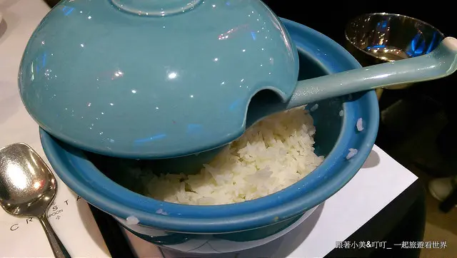 點完後會先上白飯,飯的外觀是用藍色陶瓷做成的小型鍋子,放在桌子旁的小架子上!