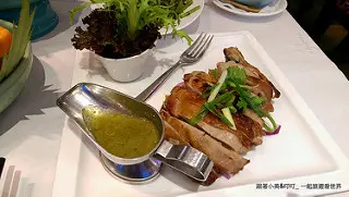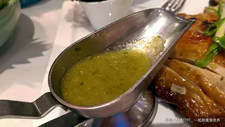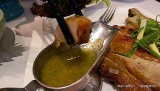 旁邊的青醬為本道料理的味覺精華,吃起來有點酸酸辣辣的加了些許檸檬