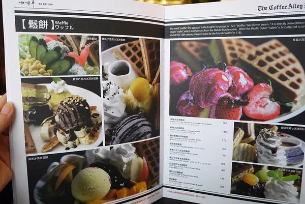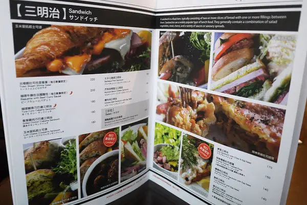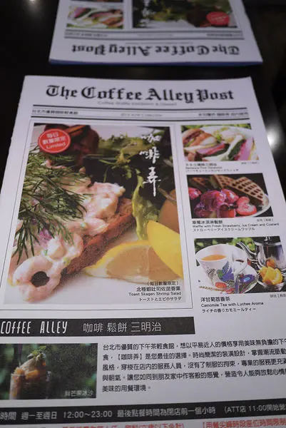 菜單的設計弄得像報紙一樣的版面,裡面主打的就是咖啡。鬆餅。三明治這三大項。從菜單裡看到的圖片餐點都好吸引人啊!