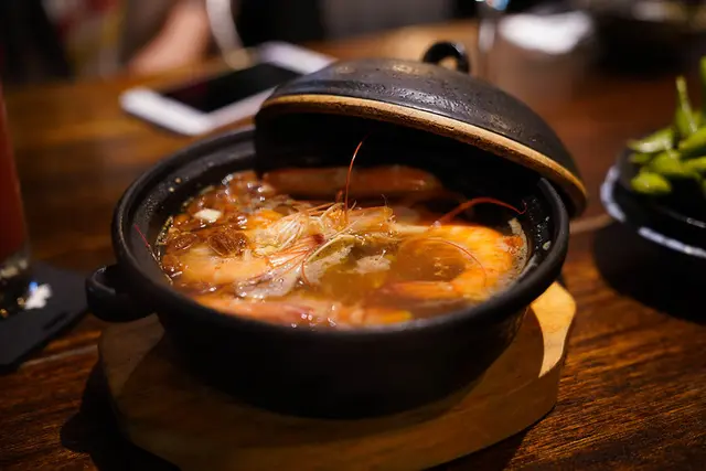 當打開鍋蓋的瞬間,酒香四溢的讓人陶醉,採用鮮蝦與蛤蜊搭著啤酒烹煮,除了湯頭的鮮甜味之外,淡雅的酒香下肚更是暖心。