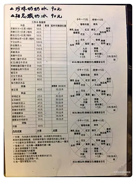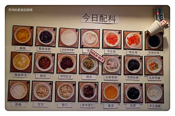 剉冰的配料樣數超多,賣完就會貼上Sold Out