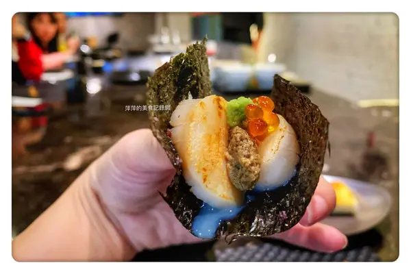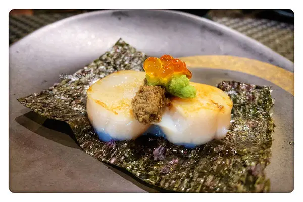 不僅有厚實的干貝還有松葉蟹膏及鮭魚卵