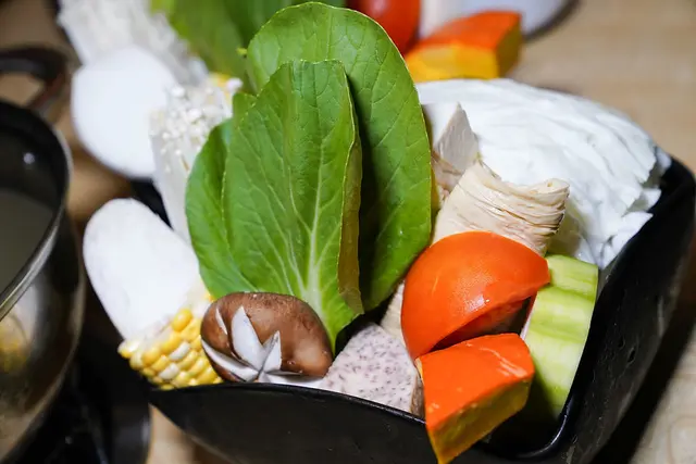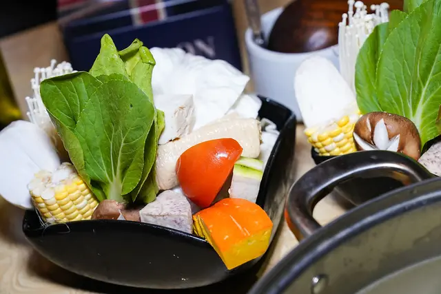 菜盤更是附上了兩份!這一份菜盤相當有份量,更是沒有看見一點火鍋料的身影,顏色繽紛又健康!偷偷說裡面還有來自日本的栗子南瓜。