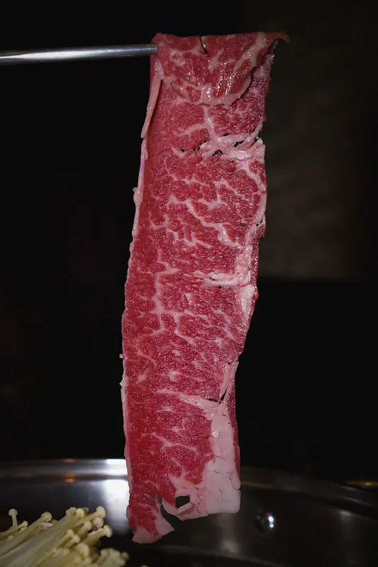 板腱牛的身軀真的好壯碩,如此優質的肉品,輕輕在清湯中,來回轉個兩至三圈即可。