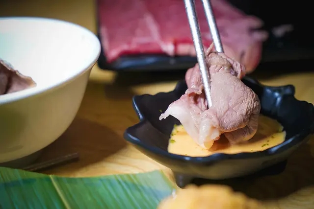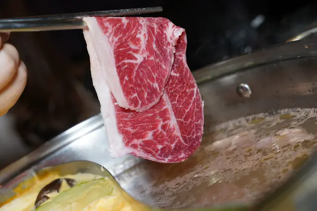 霜降的柔嫩只有體會過才懂,下鍋約三秒,待顏色粉嫩之後迅速地拿起,細嫩如雪花的滋味,持續在嘴裡蔓延開來,滿是牛香的風味,持續在嘴裡環繞。