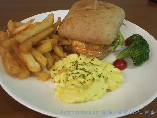 其實花生醬牛肉起司堡還滿特別的是漢堡麵包皮竟然是全麥的,烤得微Q帶軟不會乾澀還不賴 !