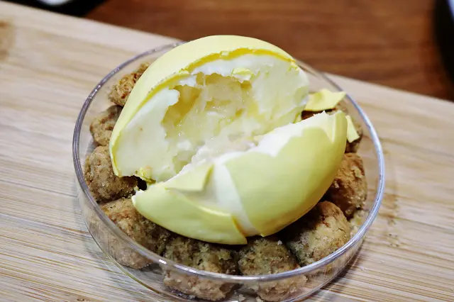 中間蛋黃的部份是柚子的果肉,酸度甜度都偏高,