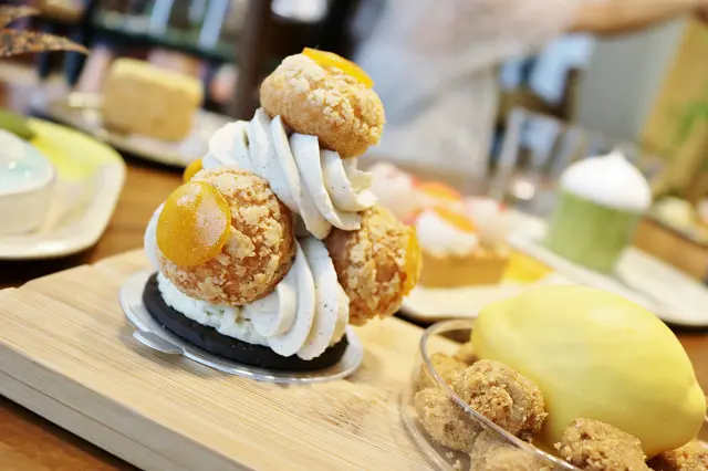 泡芙內是檸檬餡還是百香果餡一時沒注意(百香果可能是指外層那片我猜),