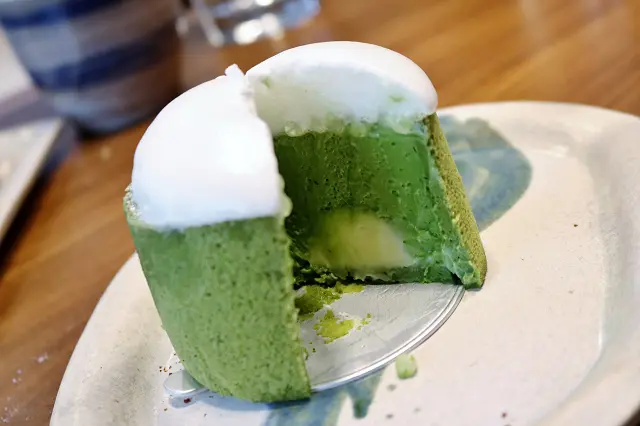 中間夾層是柚子餡,抹茶蛋糕則非常非常的濃郁,