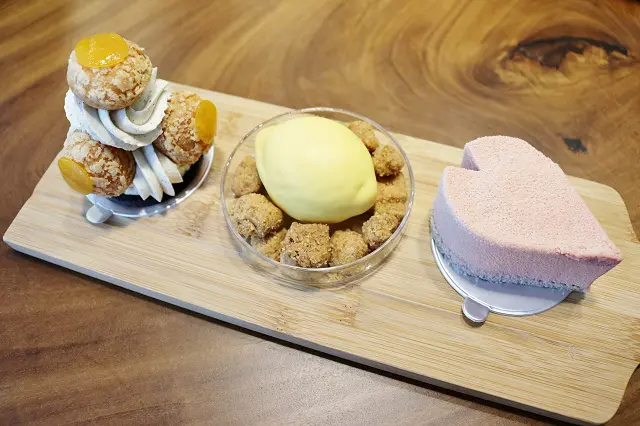 百香果脆皮泡芙、麵茶香緹、鹽之花爆米香、巧克力塔皮