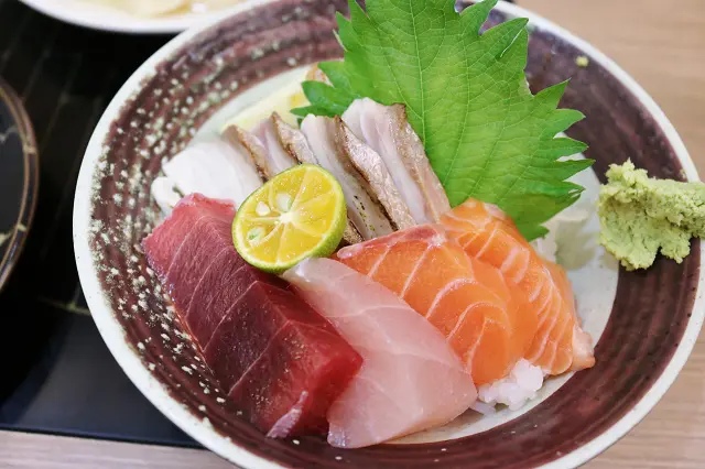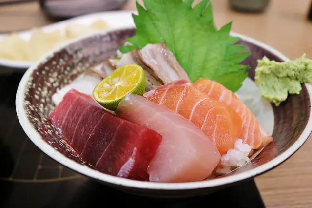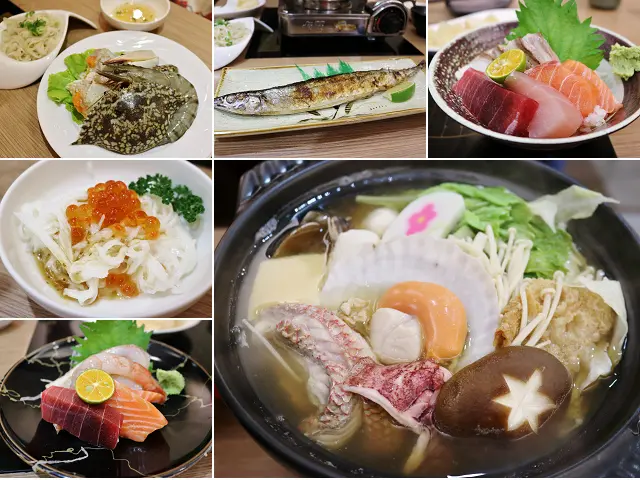 生魚片/山藥鮭魚卵/花蟹/明蝦/綜合海鮮鍋/白飯或魚麵