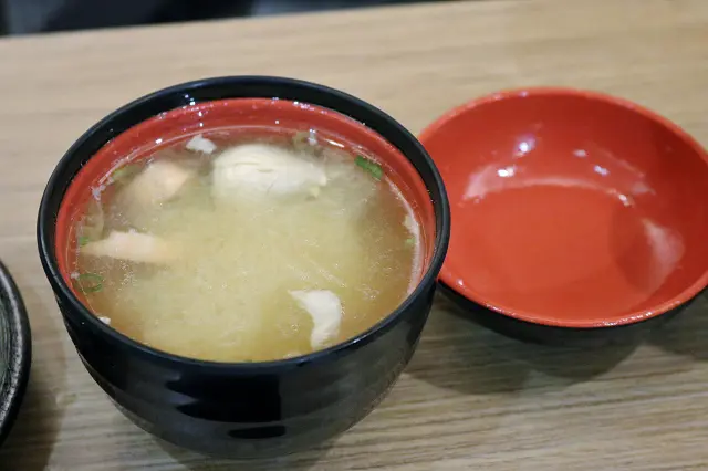 但洺町和風美食的定食還包含了味噌魚湯和一整隻烤秋刀魚,