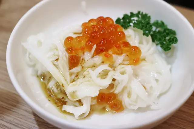 和風芥末更襯山藥的甜,鮭魚卵的鹹香使之更有層次。