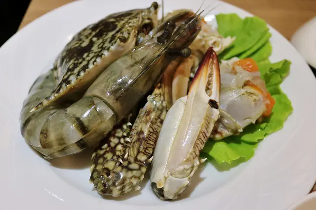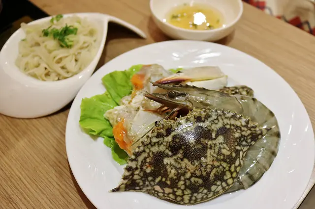 火鍋很豐盛,有白蝦、蛤、扇貝、軟絲、魚肉、火鍋料,