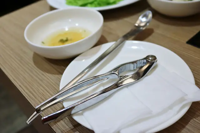 就送上了吃螃蟹的工具以及濕紙巾給我們。