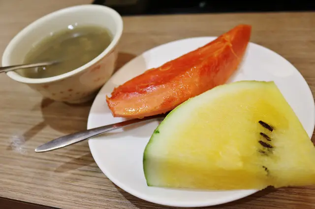餐後有水果和綠豆湯,餐點蠻平價又新鮮,