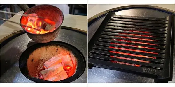 燒桶子是用炭火燒烤,入坐後服務人員會先上火紅的炭火