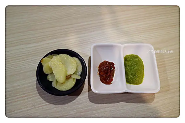 萍萍單吃沾了特製的青醬,多了清爽的口感;也蠻解膩的