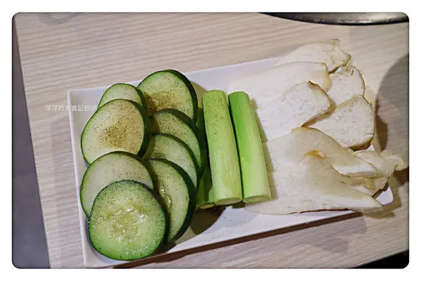 綜合蔬菜盤有:杏鮑菇、玉米筍、大黃瓜
