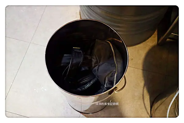 包包、外套都可以放在鐵桶裡