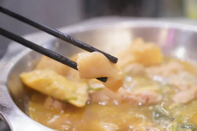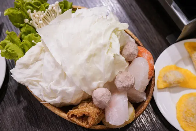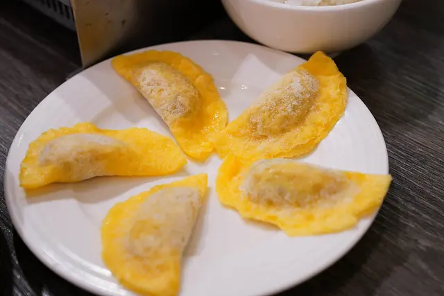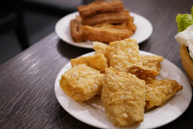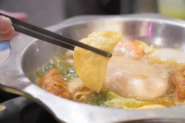 吃火鍋少不了的配料!蛋餃、豆皮、老油條!更何況我們選了中辣的湯底,老油條這是必須的。