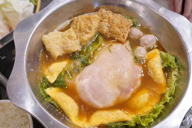 時蔬、貢丸、多利魚、豆皮、紅蘿蔔、馬鈴薯,雖然不說很豐沛,但一個人絕對飽足。