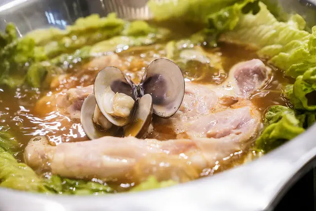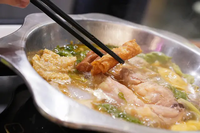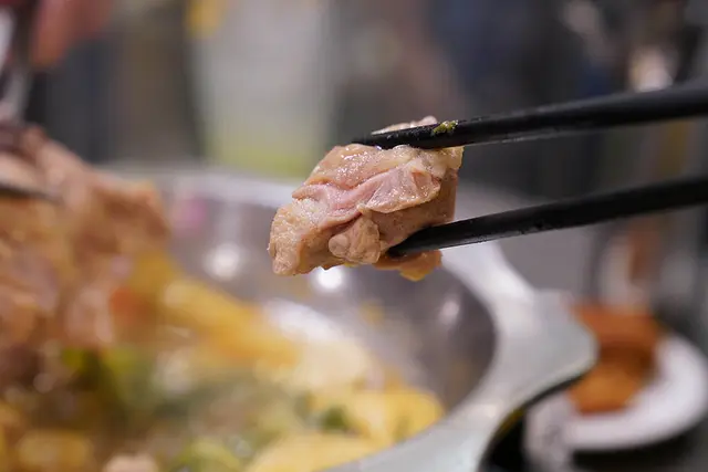 雞腿肉厚實軟嫩!吸附了滿滿的湯汁,微麻微辣的質地,真得十分過癮!店家都有附上剪刀、夾子這樣更方便夾許雞腿肉與分食,但是要切記!雞腿肉可是要熟哦!
