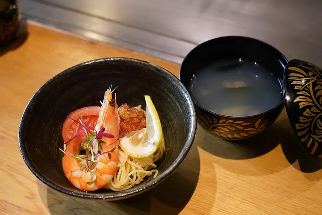 這道料理會依據當下主廚想呈現給顧客的方式來呈現,目前炎炎夏日那就來一個清爽的鮮蝦天使細麵吧!